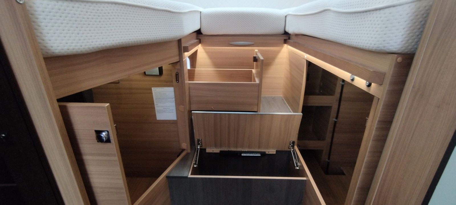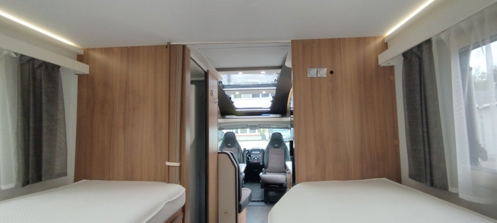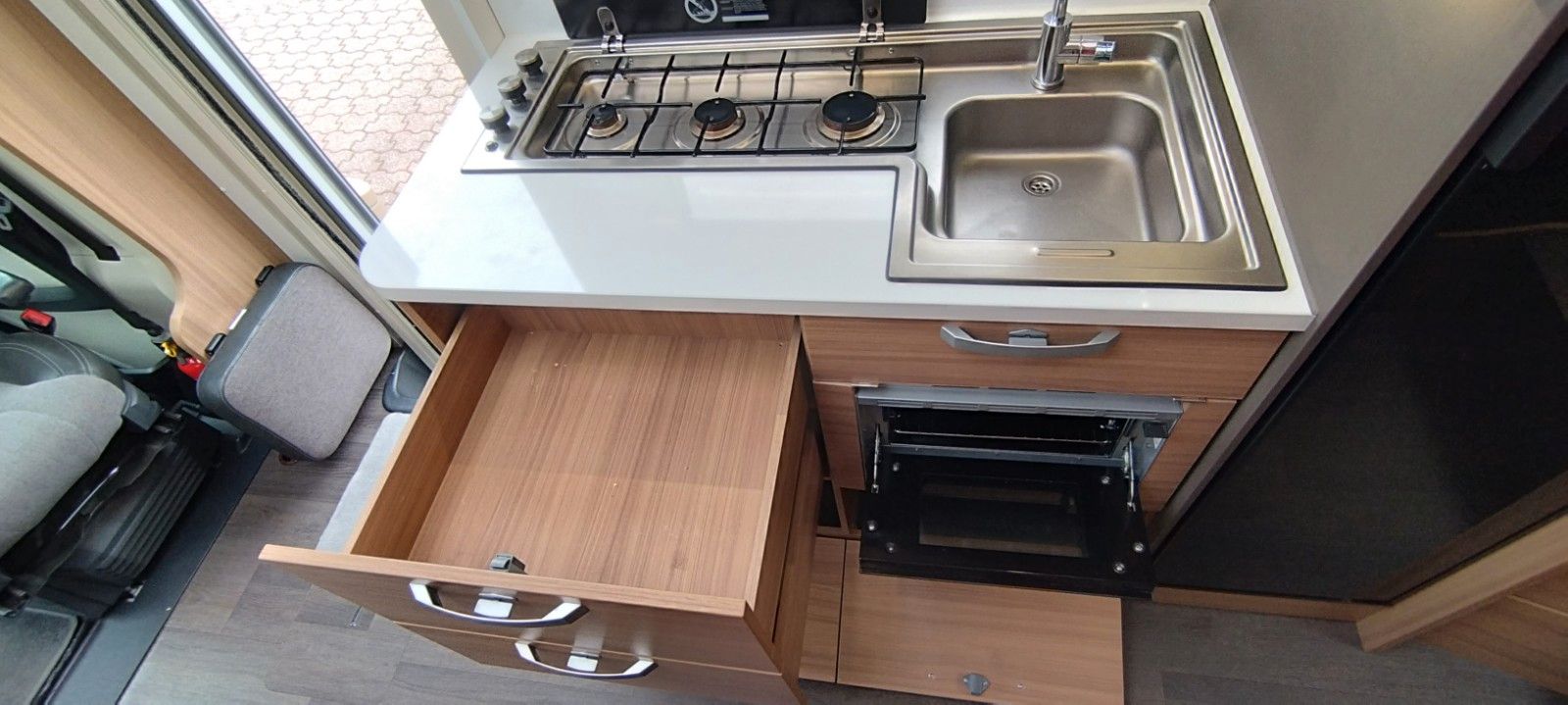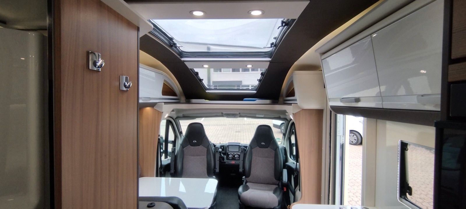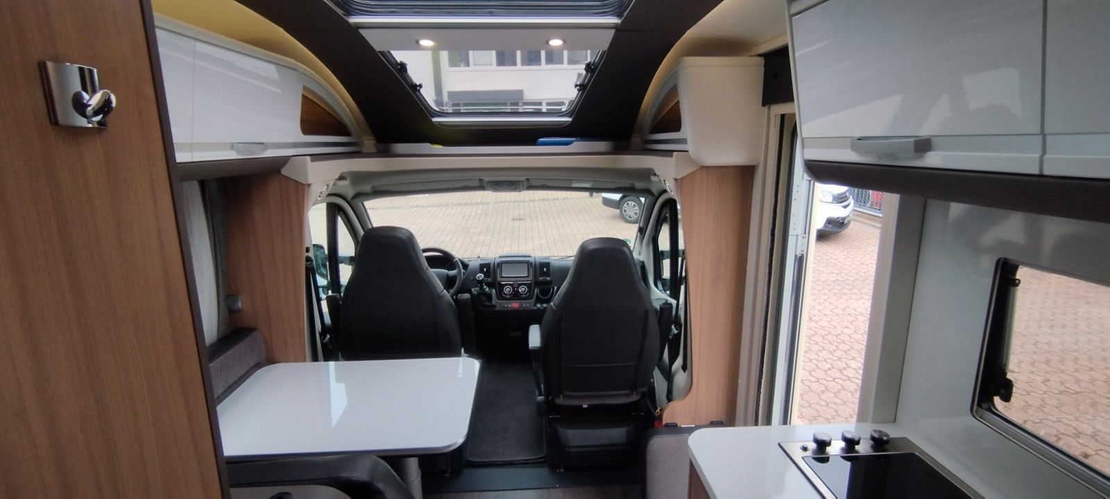 Fahrer und Beifahrer Airbag, ESP, ABS, ASR, EBD/EBV, LAC, HBA, MSR, Hill Holder, Elektr. Teil-Sperrdifferential (Traction+), Reifendruck Kontrollsystem, 16" Stahlfelgen, Hinterachs Spurweite verbreitert, Tagfahrlicht, Servolenkung variabel,Klimaanlage Fahrerhaus, Euro 6d-Temp Abgastechnik mit AdBlue, Komfort Fahrerhaussitze mit Armlehnen höhen bzw. neigungsverstellbar, 100AGM Wohnraumbatterie, Gaskocher 3 Flammen, Dunstabzug, Abdeckung Kocher u. Spüle, Abtropfschale, Wohnraumfenster mit Rahmen, Panorama Dachhaube Front, MonoControl,Getriebe 6+R (manuell).