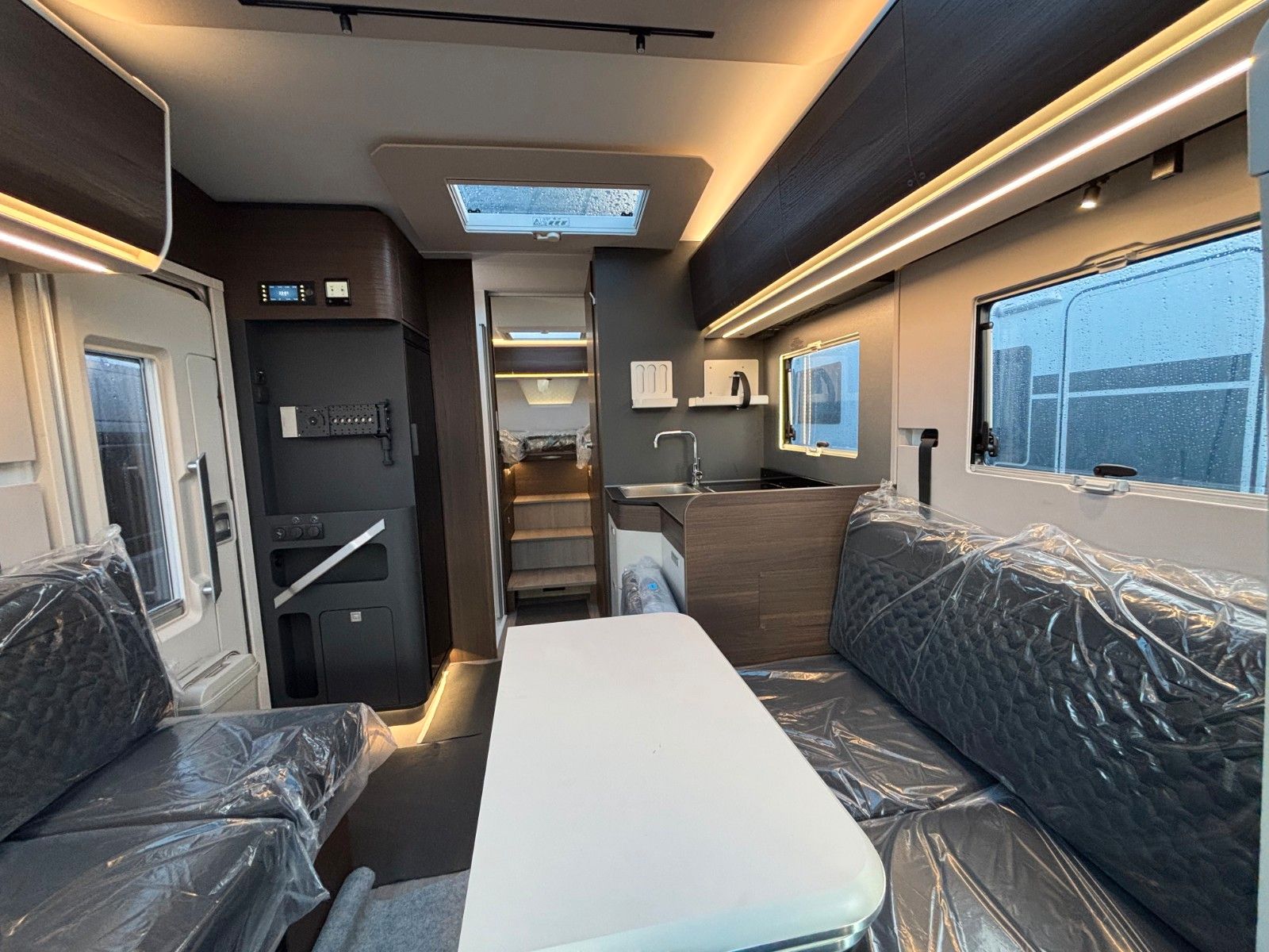 Polster Arno, Airbag Fahrer+Beifahrer, ABS,ASR,ESP,EBD,HBA,LAC,MSR, Hillholder, Tagfahrlicht, LED Rücklicht, Klimaanlage Fahrerhaus,Außenspiegel elektr. verstell und beheizbar, Fensterheber FH elektr., Funk Zentralverriegelung FH, Tempomat, dreh- und höhenverstellbare Komfort FH Sitze mit Armlehnen im Wohnraumdesign, Getriebe Manuell (6+R), Frontantrieb, 16" Räder (bei Automatik Getriebe), Reifen-Reparatur-Set, Frontstoßfänger lackiert in FH-Farbe, Wohnraumfenster mit Rahmen, Funktions Doppelboden, AGM Wohnraumbatterie 100Ah,Ladestation 230V/12V in Garage, Sicherheits-Gasregler MonoControl CS, Dunstabzug, Abdeckung Kocher, Abtropfschale, Cassetten-Toilette mit elektrischer Spülung.