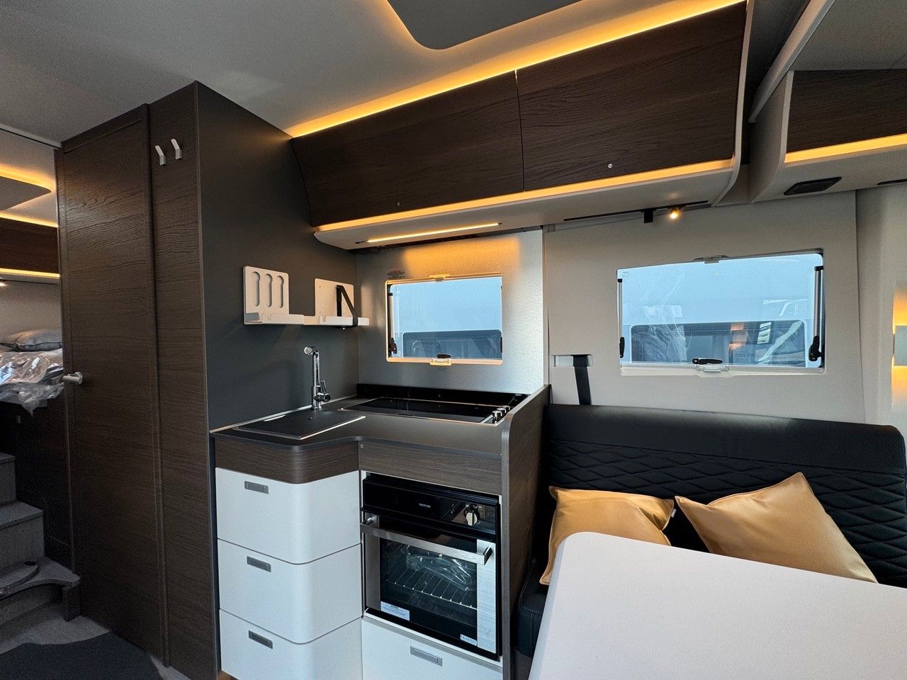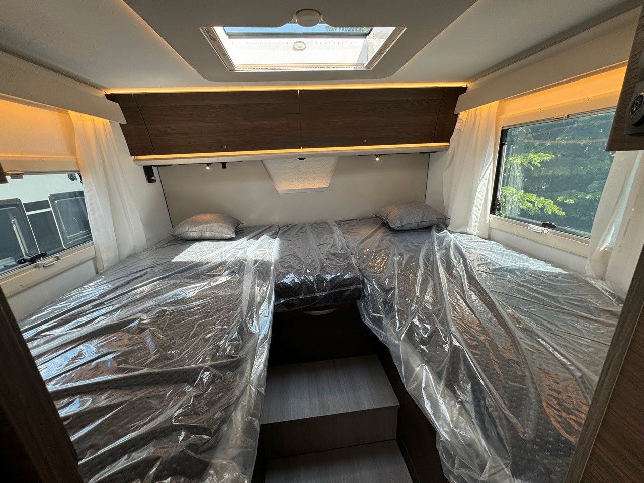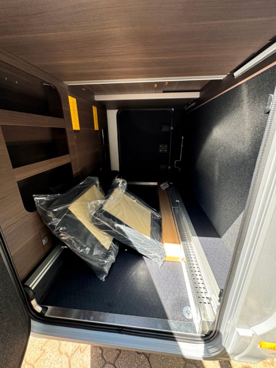 Einparkhilfe hinten, Lenkrad in Lederoptik, DAB-Radio-Vorbereitung FH, Leichtmetall Felgen, Kurbelstützen hinten, Falt Verdunkelung Fahrerhaus, Wohnraumtür mit Fliegenschutz + Fenster + ZV, Federkern Matratze auf Festbetten, Ladebooster, TFT Halterung, Gasfilter, Warmwasser-Fußbodenheizung.
