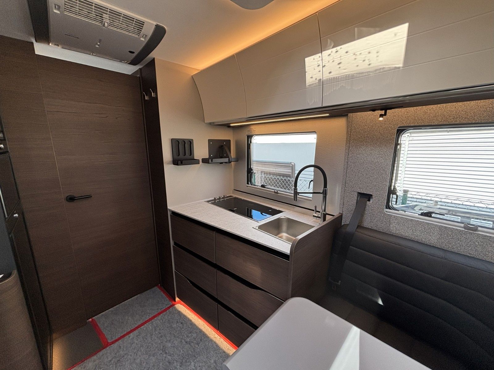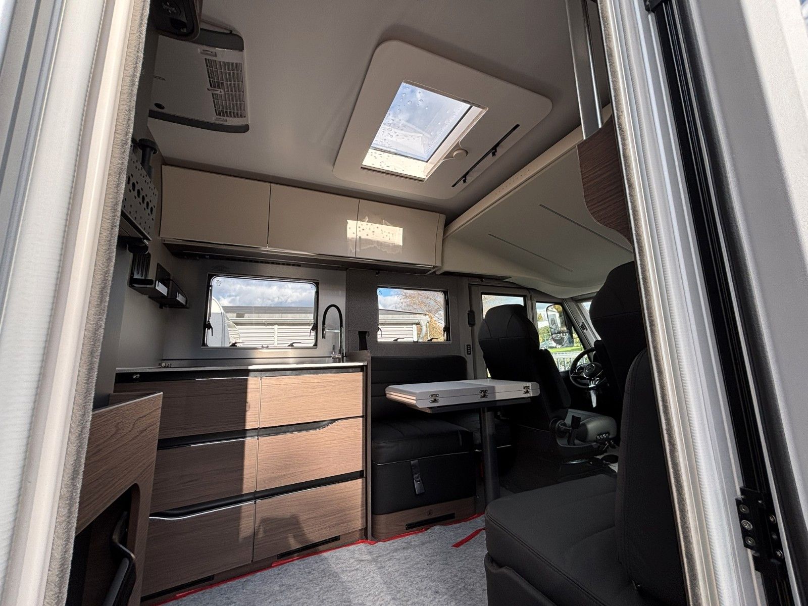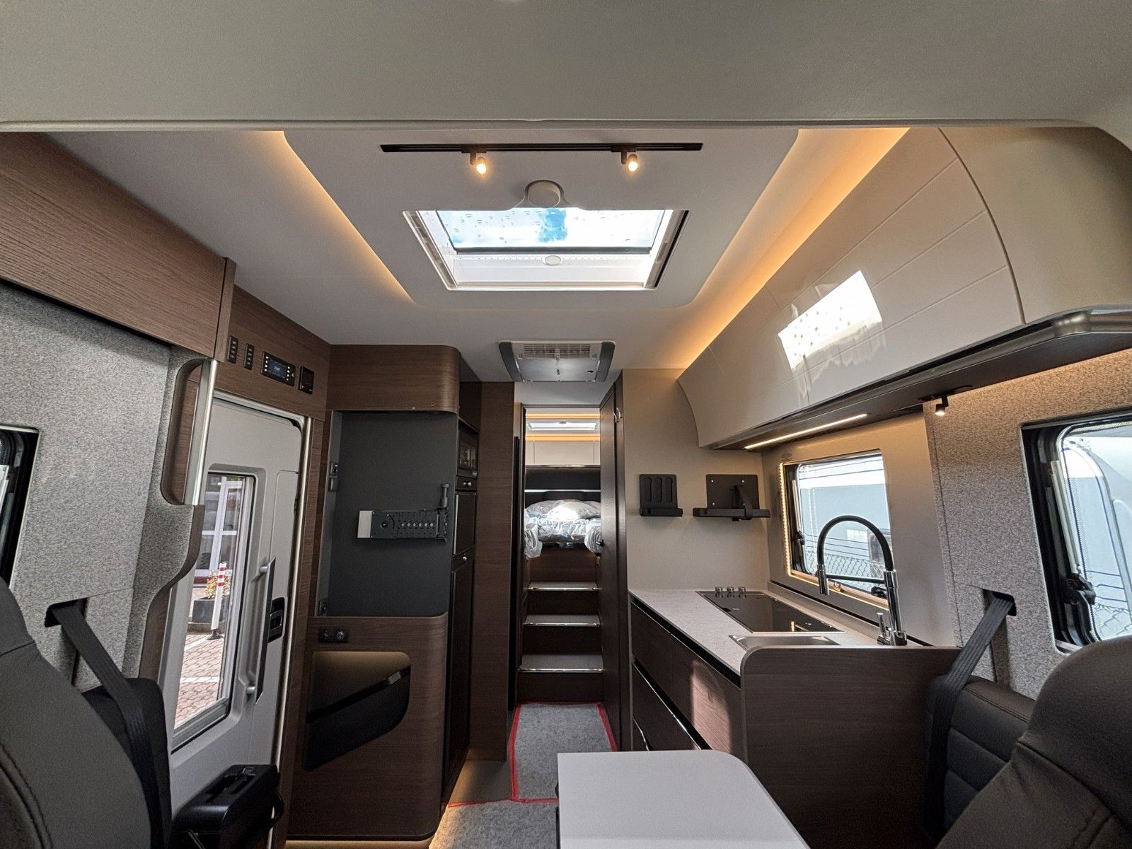 Chassis Mercedes Sprinter mit AL-KO Tiefrahmen, Airbag Fahrer+Beifahrer, Isofix-Kindersitz befestigung Rückbank (1Stück), ABS,ASR,ESP,Notbrems Assistent, Spurhalte Assistent, Seitenwind Assistent, Berganfahrhilfe, Notruf System, LED Frontscheinwerfer, LED Tagfahrlicht, LED Nebelscheinwerfer, LED Rücklicht, Klimaanlage Fahrerhaus, Tempomat, Regensensor, Einparkhilfe hinten, Hängende Außenspiegele elektr. verstell und beheizbar, Fensterheber FH links elektr., Funk Zentralverriegelung FH, 10"DAB-Moniceiver MBUX, Multifunktionslenkrad in teilleder, dreh-,höhenverstellbare und beheizbare Komfort FH Sitze mit Armlehnen im Wohnraumdesign, Abgasnorm EuroVI, Stopp-Start System, Getriebe manuell (6+R bei 780), Getriebe automatisch (9+R bei 890), Frontantrieb, Tandemachse bei 890, 16"-Räder, Leichtmetall Felgen, Reifen Reparatur Set, Handbremse elektrisch, Kurbelstützen hinten, Falt Verdunkelung Fahrerhaus, Wohnraumtür mit Fliegenschutz+Fenster+ZV, Wohnraumfenster mit Rahmen, Panorama-Dachhaube Front, Funktions Doppelboden, Federkern Matratze auf Festbetten, APP Vorbereitung Adria MACHplus, AGM Wohnraumbatterie 100Ah, Ladebooster, Ladestation 230V/12V in Garage, TFT Halterung, Sicherheits Gasregler Mono Control CS, Gasfilter, Warmwasser Fußbodenheitzung inkl. Fahrerhaus, Dunstabzug, Abdeckung Kocher und Spüle, Backofen mit Grill, Abtropfschale, Cassetten Toilette mit elektr. Spülung. Dachhaube Wohn-/ Schlafraum 70x50 cm/ 70x50 cm, Außenstauklappe links / rechts 85x120 cm / 85x120 cm.Kapazität Gaskasten 2x11Kg, Absorber Kühlschrank 175l, Gaskocher mit 3 Flammen, Abwasser 150l, Frischwasser 150l, Möbeldekor: Moro, Dieseltank 90l, AdBlue-Tank 22l.