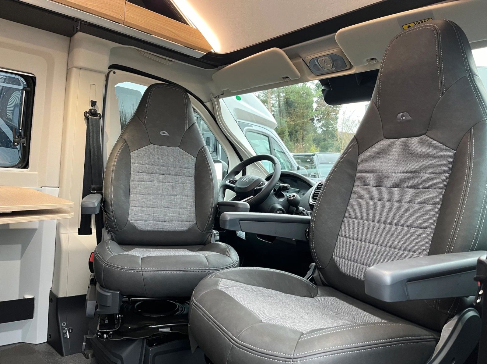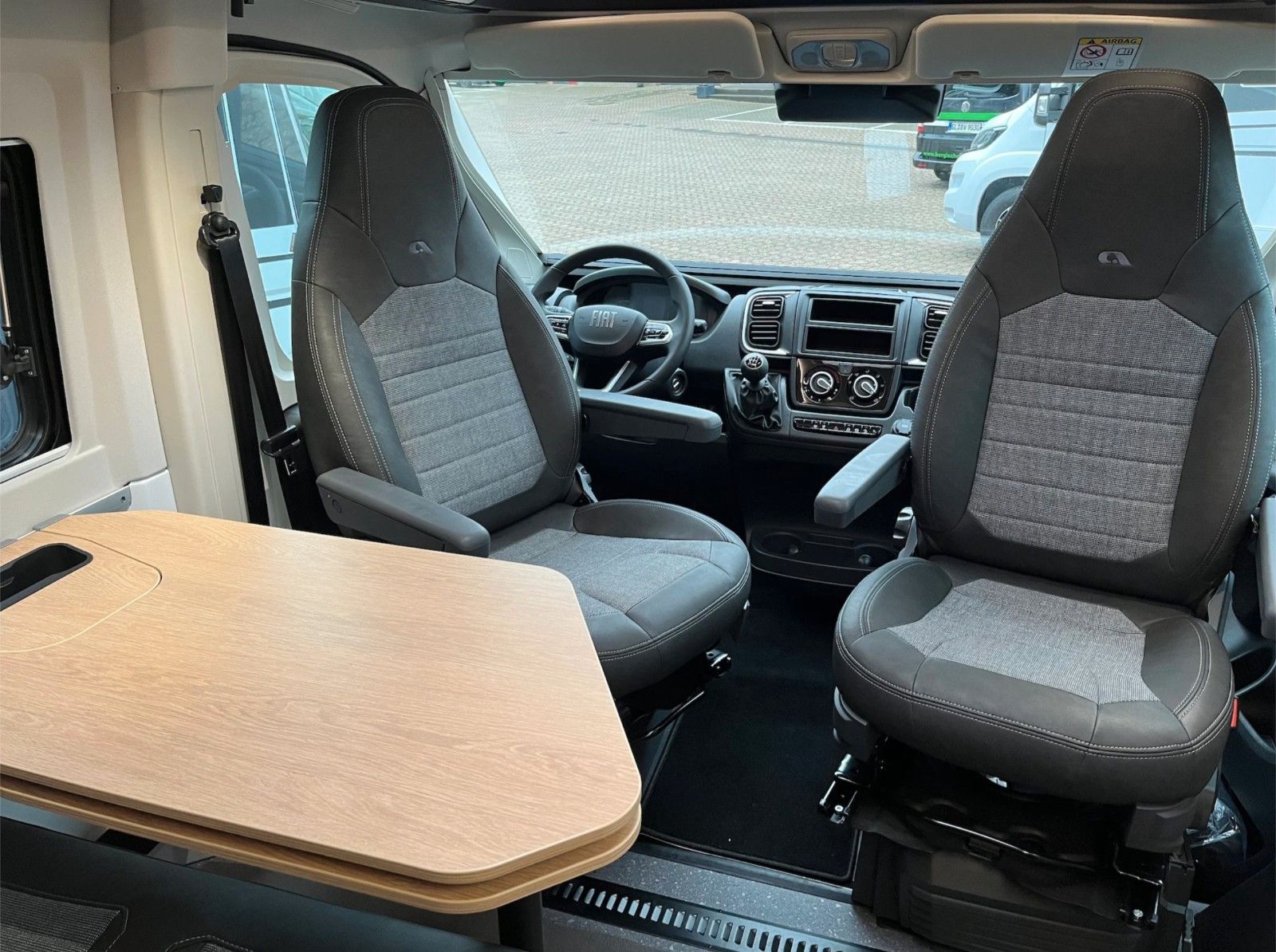 Polster "Arno", Chassis Fiat Ducato mit Tiefrahmen, Airbag Fahrer+Beifahrer, ABS, ASR, ESP, EBD, HBA, LAC, MSR, Hillholder, Traction+, Tagfahrlicht, LED-Rücklicht, Klimaanlage FH, Außenspiegel elek. verstell- und beheizbar, Fensterheber FH elek., Funk-Zentralverriegelung FH, Tempomat, höhenverstellbare Komfort-FH-Sitze mit Armlehnen im Wohnraumdesign, Abgasnorm Euro 6e, ECO-PACK (Stopp-Start + Lichtmaschine intelligent), Getriebe manuell (6+R), 16"-Räder (bei Automalik-Getriebe), Reifen-Reparatur-Set, Frontstoßfänger lackiert in FH-Farbe, Wohnraumfenster mit Rahmen, AGM-Wohnraumbatterie 100Ah, Ladestation 230V / 12V in Garage, Sicherheits-Gasregler MonoControl CS, Dunstabzug, Abdeckung Kocher + Spüle, Abtropfschale, Cassetten-Toilette mit elektrischer Spülung.