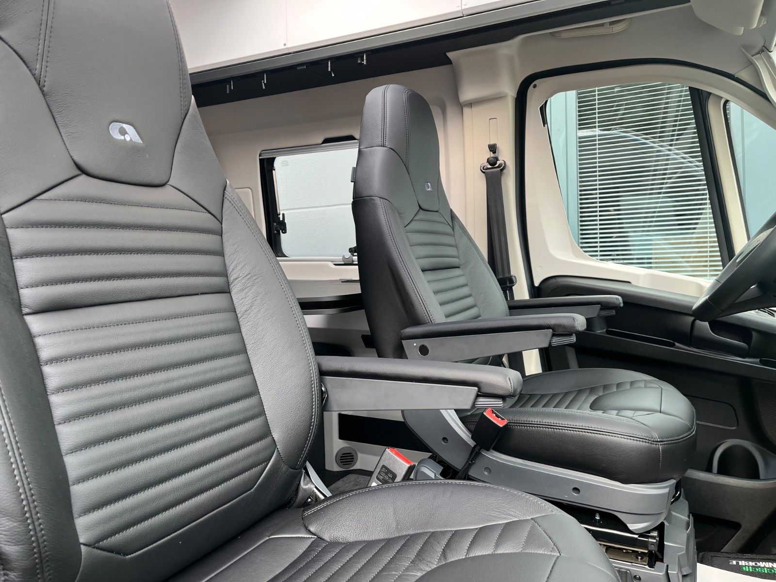 Polster "Arno", Airbag Fahrer + Beifahrer, ABS,ASR,ESP,Hillholder, Traction+, Tagfahrlicht, Klimaanlage Fahrerhaus, Tempomat, Funk-Zentralverriegelung, Außenspiegel elektr. verstell- und beheizbar, Fensterheber Fahrerhaus elektr., dreh- und höhenverstellbare Komfort-Fahrerhaus-Sitze mit Armlehnen im Wohnraumdesign, Stopp-Start-Automatik, 16" Räder, Reifen-Reparaturset, Stopper an Schiebetüre, App-Vorbereitung Adria-MACHbasic, AGM-Wohnraumbatterie 100AH, Dusche, Schwenkbad, Cassetten-Toilette mit elektr. Spülung, Panorama-Dachhaube Front.