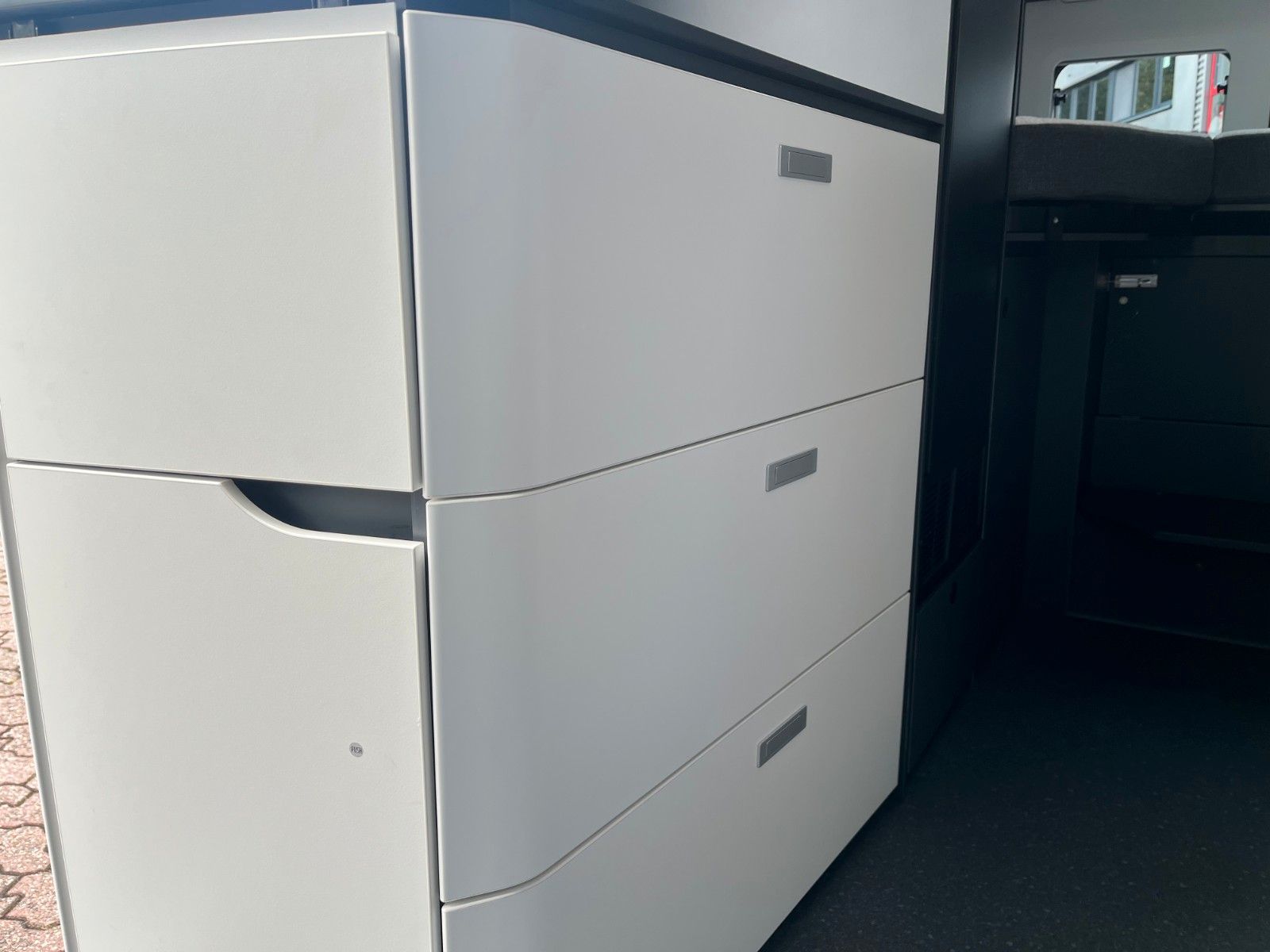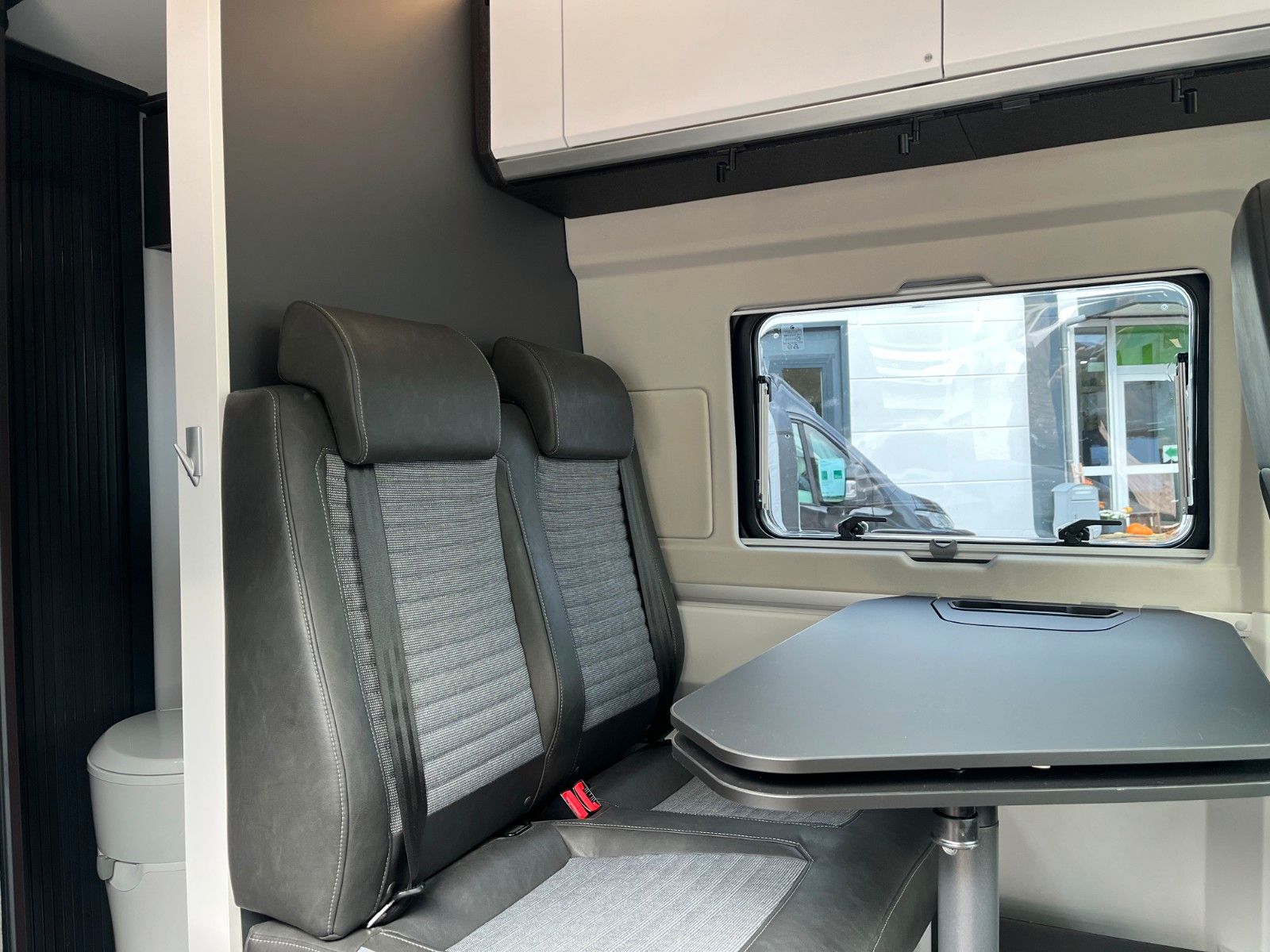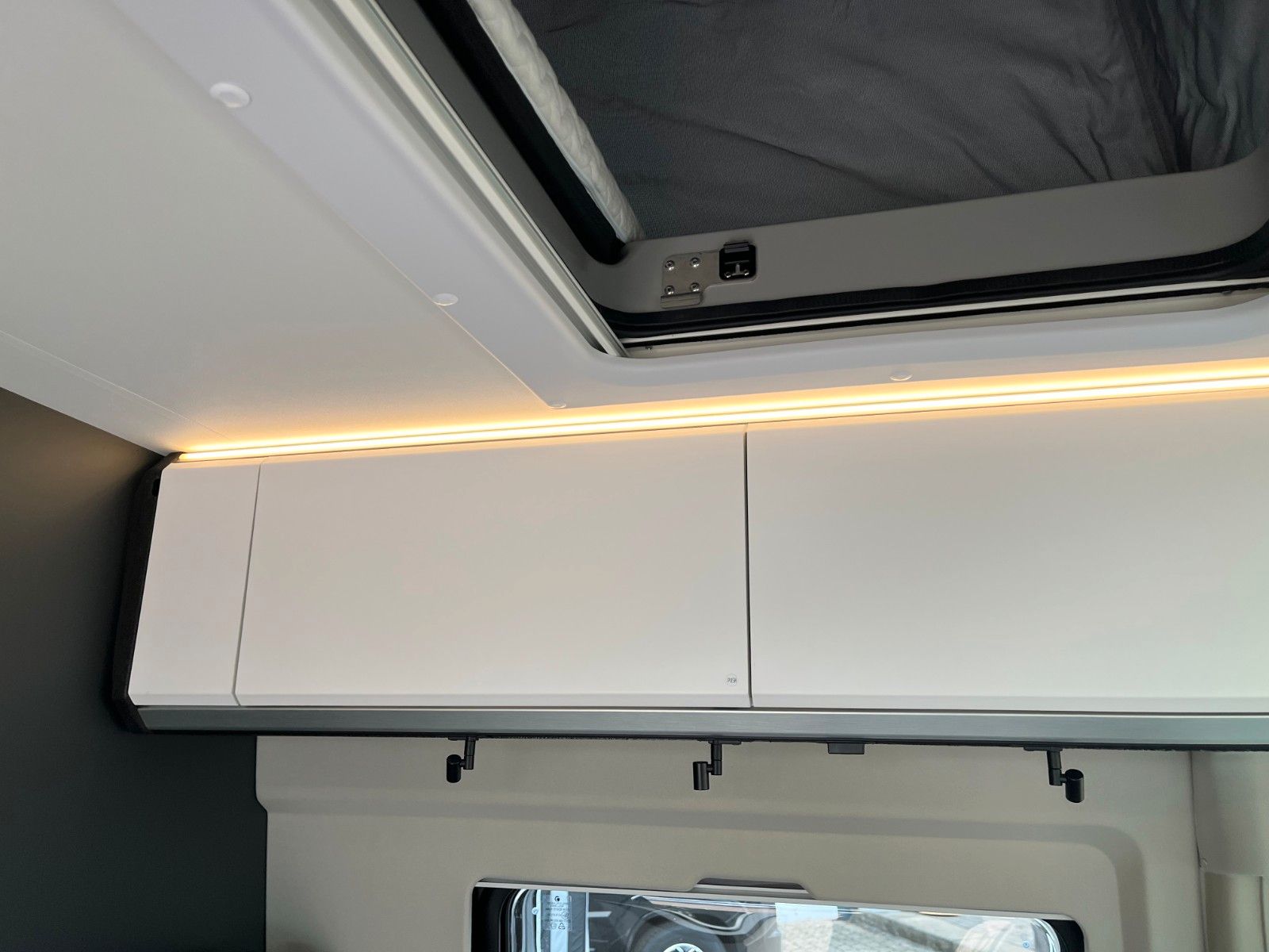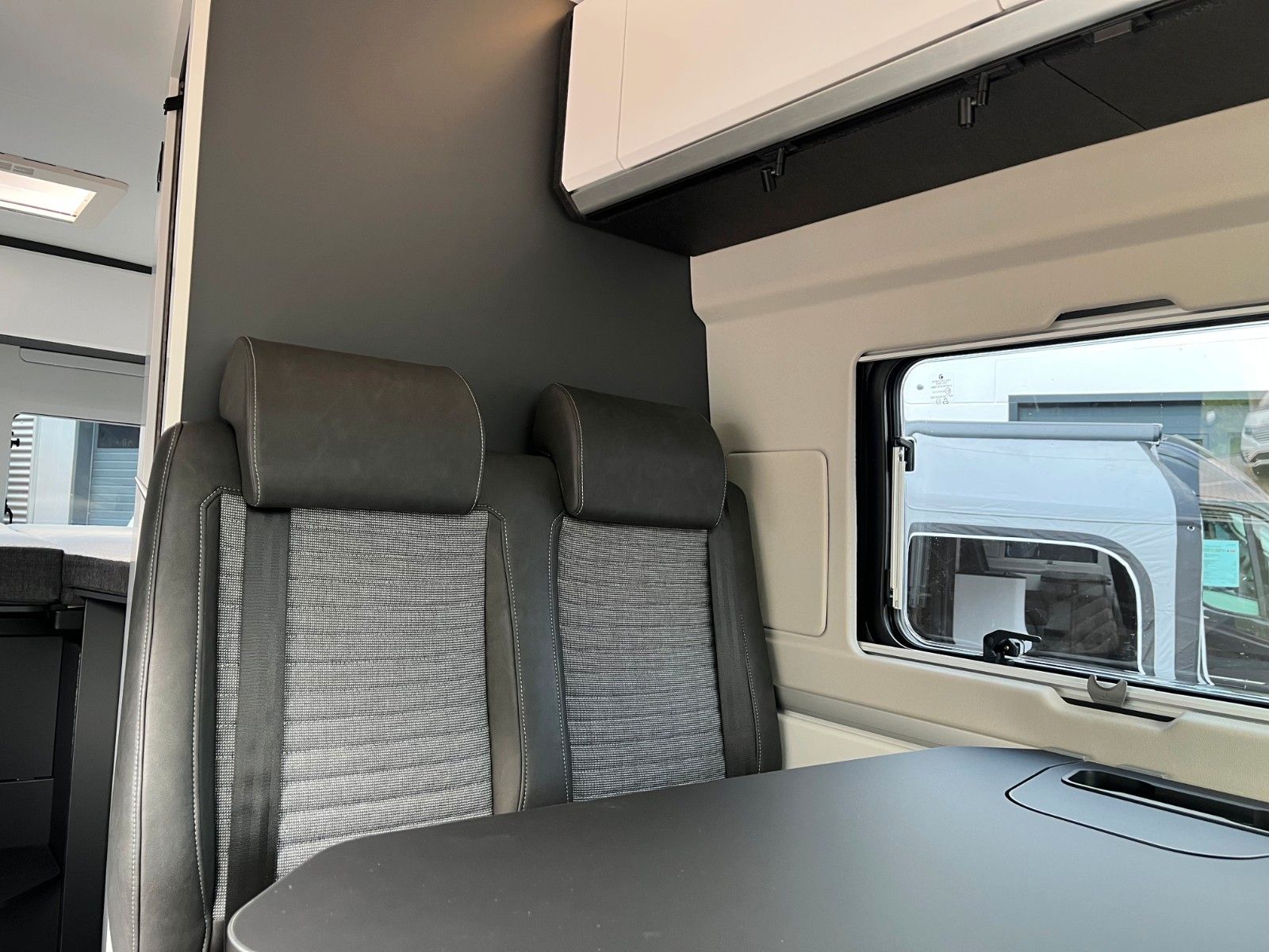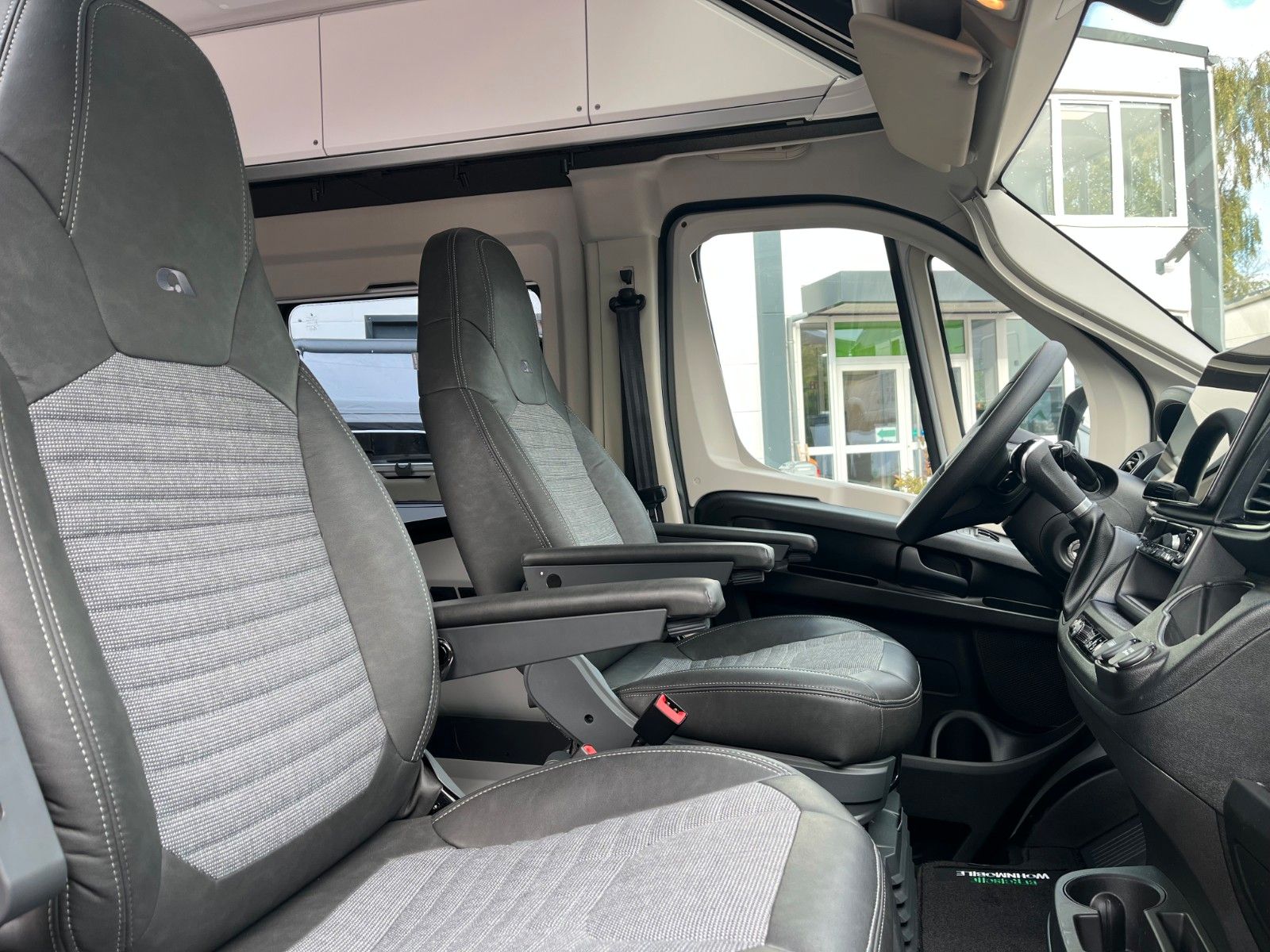 Polster "Arno", Airbag Fahrer + Beifahrer, ABS,ASR,ESP,EBD,HBA,LAC,MSR,Hillholder, Traction+, Tagfahrlicht, Klimaanlage Fahrerhaus, Außenspiegel elektr. verstell- und beheizbar, Fensterheber Fahrerhaus elektr., Funk-Zentralverriegelung,Tempomat, dreh- und Höhenverstellbare Komfort-Fahrerhaus-Sitze mit Armlehnen im Wohnraumdesign, Stopp-Start-Automatik, Getriebe manuell,16" Räder, Reifen-Reparaturset, Stopper an Schiebetüre,AGM-Wohnraumbatterie 100Ah, Fenster seitlich im Schlafraum, Dusche, Schwenkbad, Cassetten-Toilette mit elektr. Spülung, Aufstelldach, Bett im Aufstelldach tellergefedert, Panorama-Dachhaube Front zum öffnen.