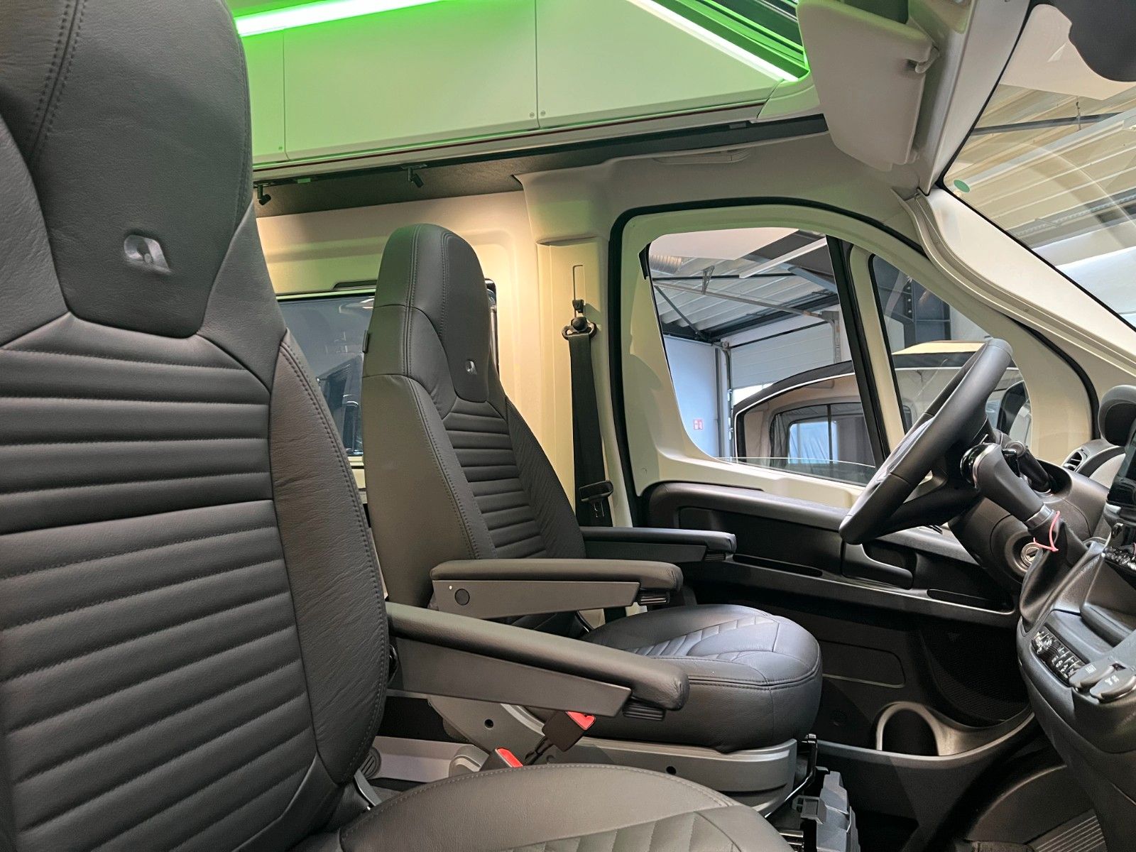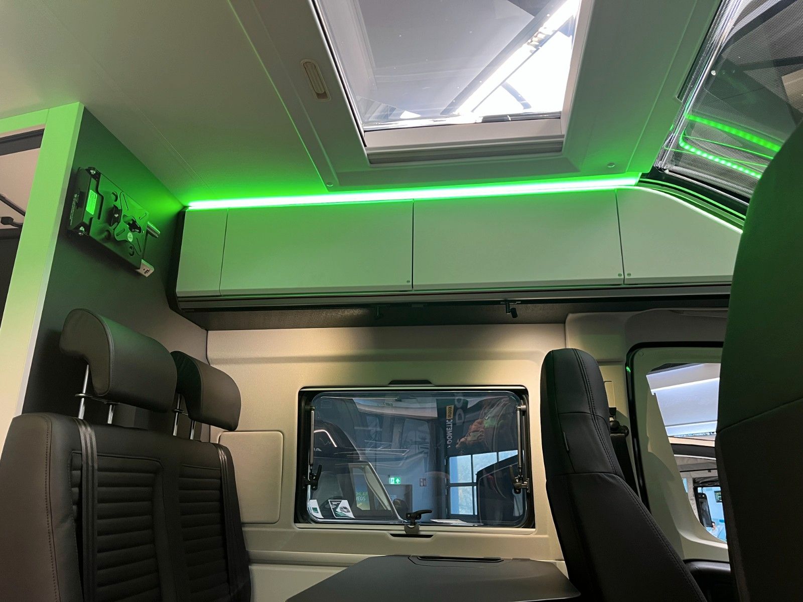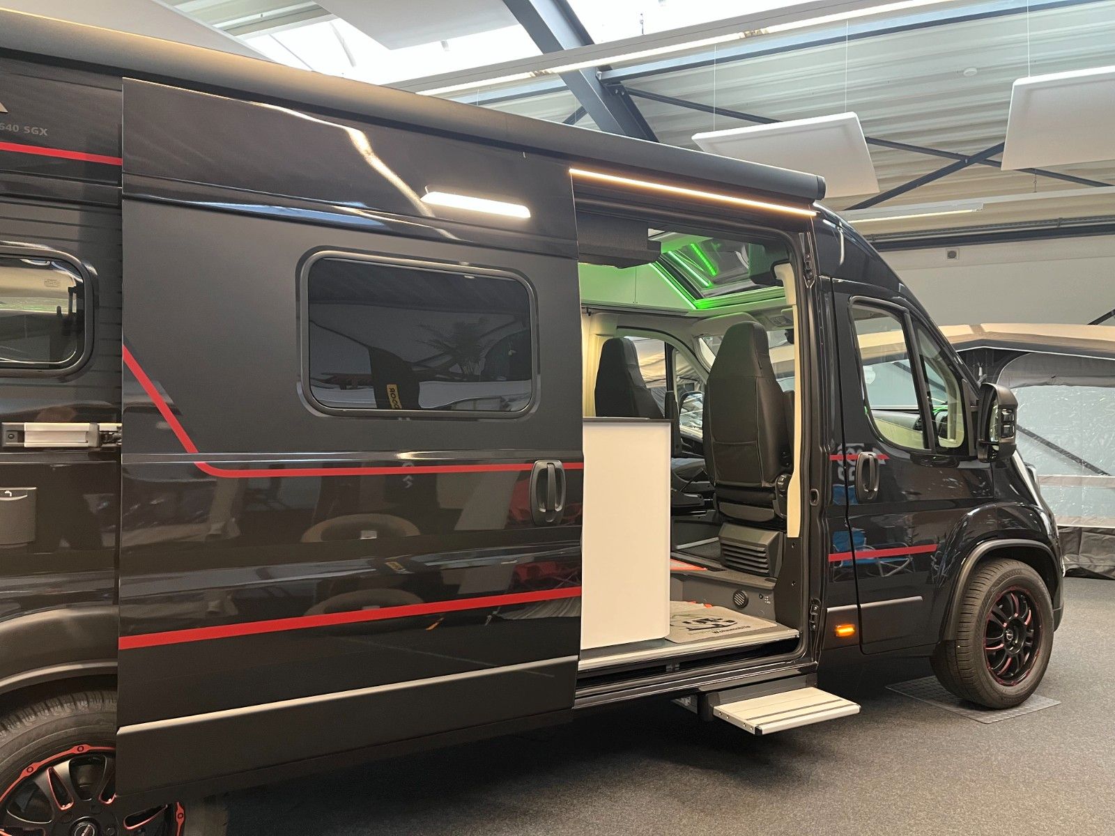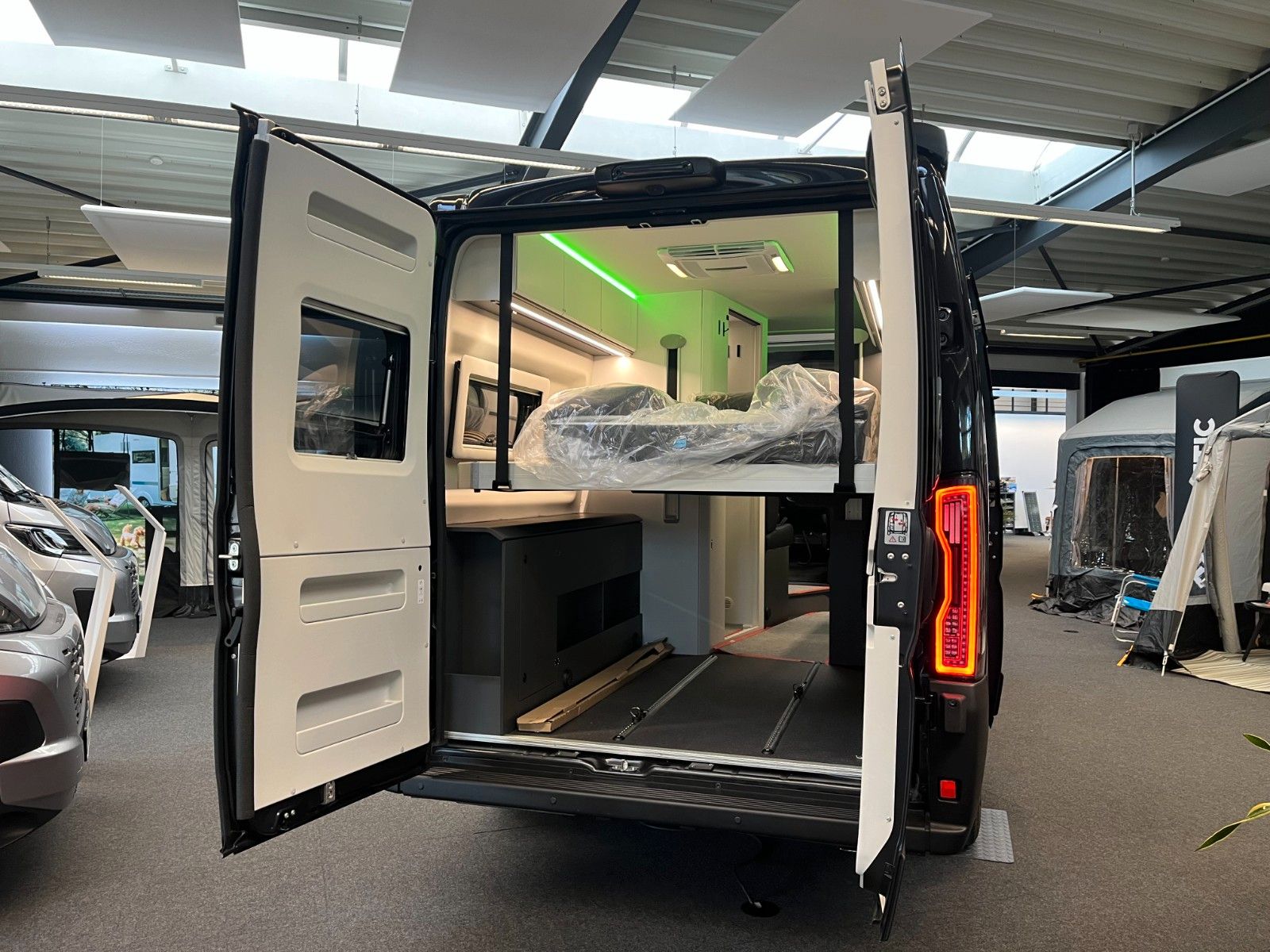 Einparkhilfe hinten, Fahrerhaus und Wohnraumscheiben getönt, Falt-Verdunkelung Fahrerhaus, Fliegenschutz an Schiebetür, Einstiegsstufe elektrisch + beleuchtet, LED Ambientebeleuchtung, Lade Booster