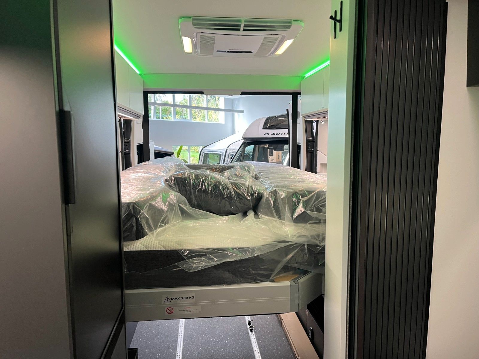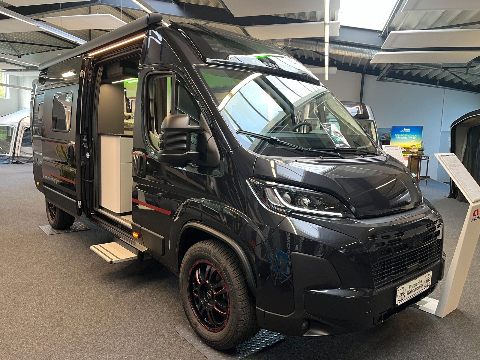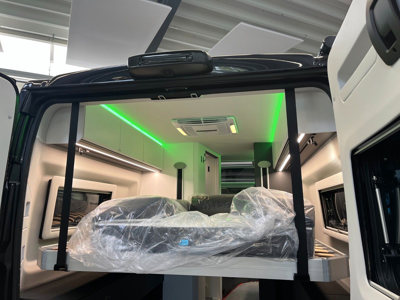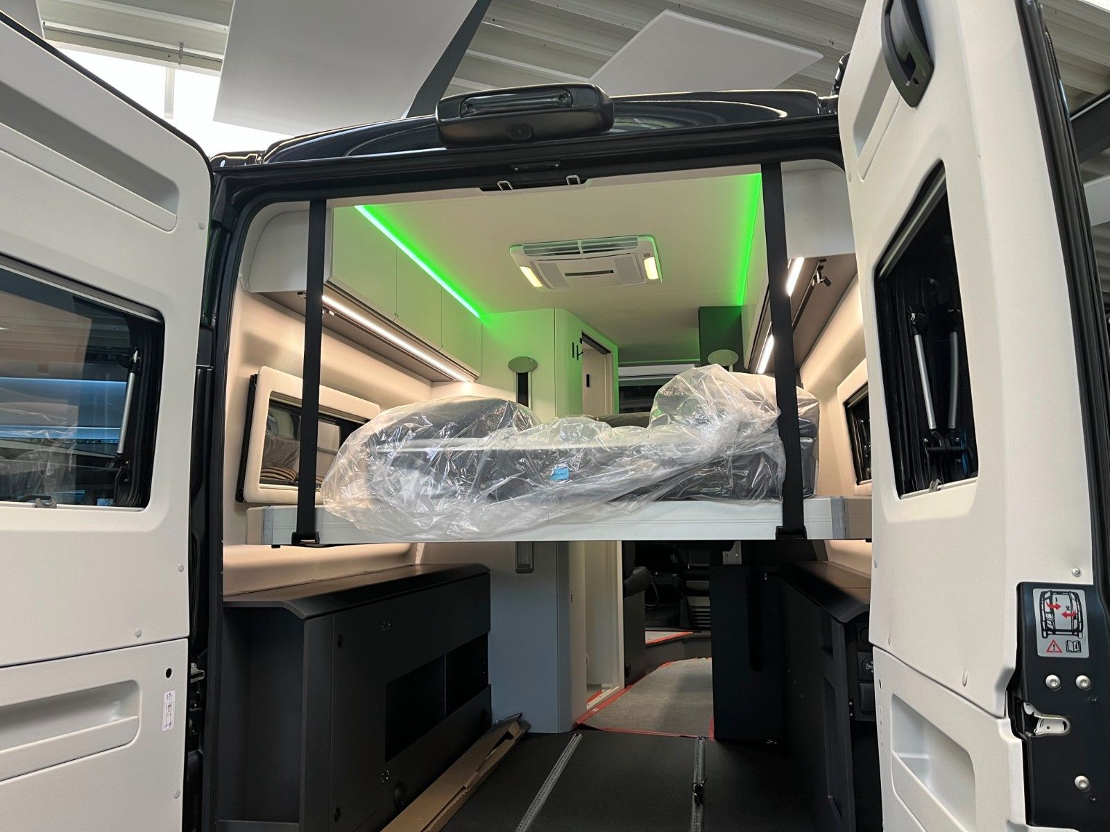 Einparkhilfe hinten, Fahrerhaus und Wohnraumscheiben getönt, Falt-Verdunkelung Fahrerhaus, Fliegenschutz an Schiebetür, Einstiegsstufe elektrisch + beleuchtet, LED Ambientebeleuchtung, Lade Booster