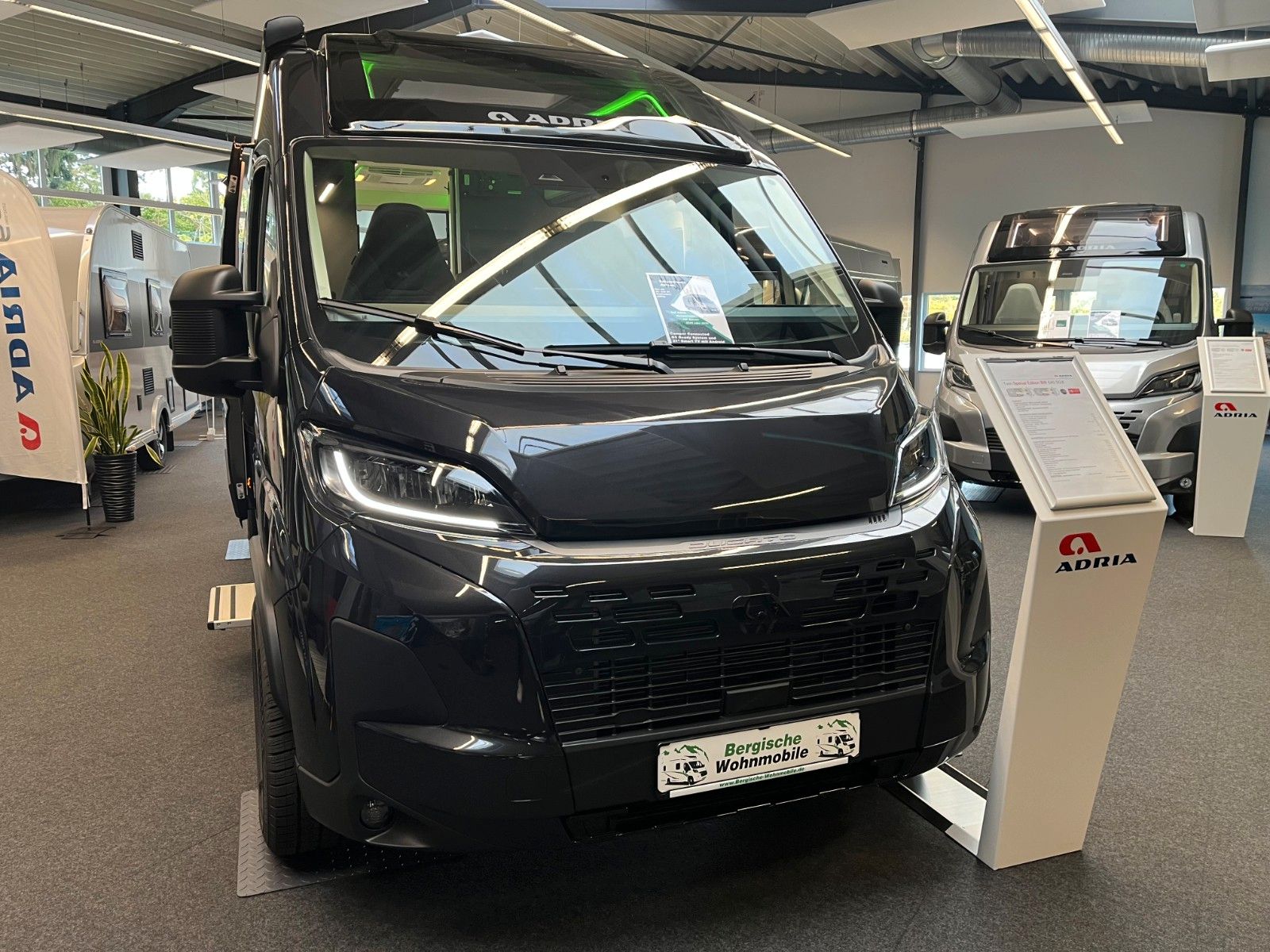 Automatik-Getriebe, Airbag Fahrer + Beifahrer, ABS, ASR, ESP,EBD,HBA,LAC,MSR, Hillholder Trcktion +, Tagfahrlicht 16" Leichtmetall-Felgen, Lenkrad in Lederoptik, Lenkradbedienung und Antenne im Außenspiegel, Klimaanlage Fahrerhaus, Komfort-FH-Sitze mit Armlehnen im Wohnraumdesign, Fahrzeuglackierung Schwarz Metallic, Frontstoßfänger lackiert, Nebelscheinwerfer, DC/DC-Wandler (Lichtmaschinen-Booster), Plissee-Verdunkelung Fahrerhaus, Fliegenschutz an Schiebetür, Wohnraumfenster mit Rahmen, Komfort-Tisch mit Verlängerung und Becherhalter, isofix, Evopore Schaumstoffmatratze, Abwassertank isoliert und beheizt, TV-Halterung, Adria MACH Basic, Möbeldekor Onyx, LED Frontscheinwerfer.