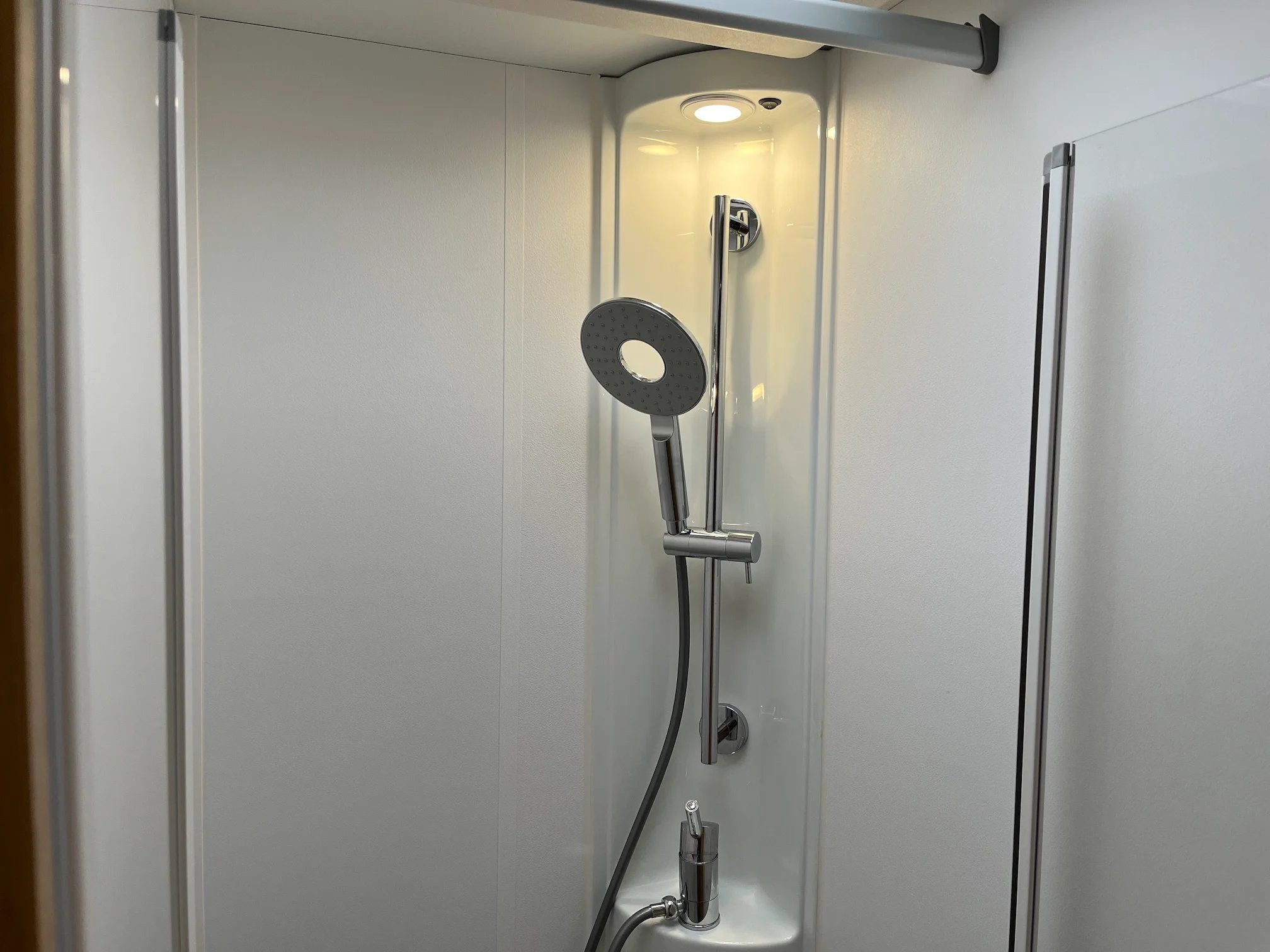 - Stromversorgung: Landversorgung über 230V, Bordversorgung aus 12V Batterie, Freistehen möglich