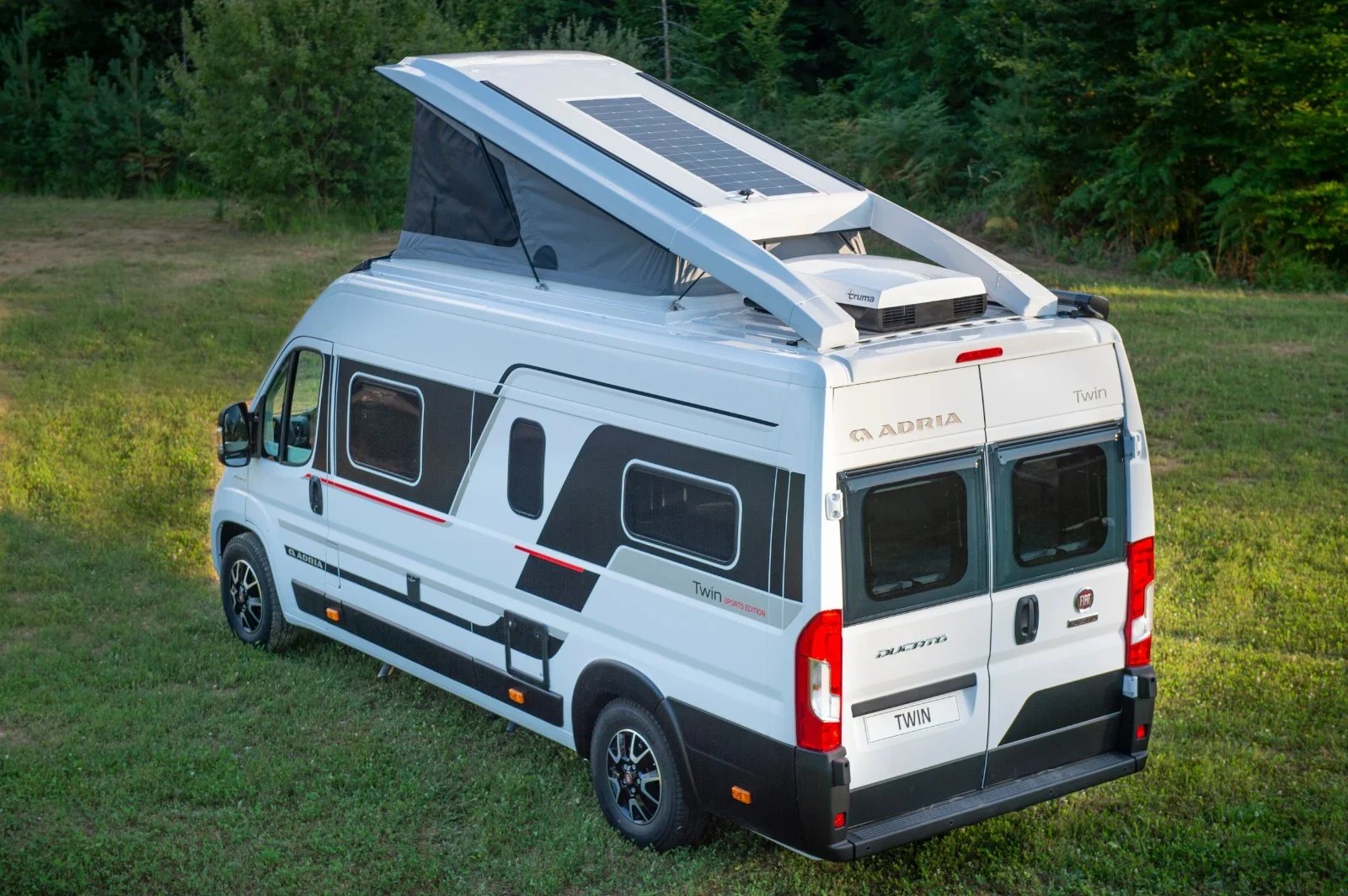 Der Twin Sports 640 SLB von Adria ist ein innovativer Campervan, der sich durch seine Geräumigkeit, moderne Ausstattung und Vielseitigkeit auszeichnet. Als größerer Kastenwagen in der Twin Modellreihe basiert der Twin Sports 640 SLB auf dem zuverlässigen Fiat Ducato Chassis und bietet den Komfort eines Wohnmobils mit der Wendigkeit und Flexibilität eines Kastenwagens.